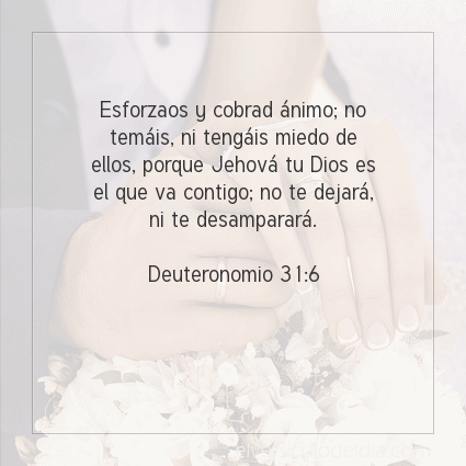 Home Variadas Postal – Esforzaos y cobrad ánimo;… Variadas Postal – Esforzaos y cobrad ánimo;… 23 Facebook Twitter Google+ Pinterest WhatsApp Esforzaos y cobrad ánimo; no temáis, ni tengáis miedo de ellos, porque Jehová tu Dios es el que va contigo; no te dejará, ni te desamparará. Deuteronomio 31:6 RELATED ARTICLESMORE FROM AUTHOR Postal – Pero el Señor es… Postal – Antes digo que lo… Postal – En Dios está mi… Postal – Oh Jehová, tú me… Postal – Pero el Señor es… Postal – Esforzaos y cobrad ánimo;… Postal – Porque el Señor al… Postal – Se le permitió infundir… Postal – Se le concedió dar…